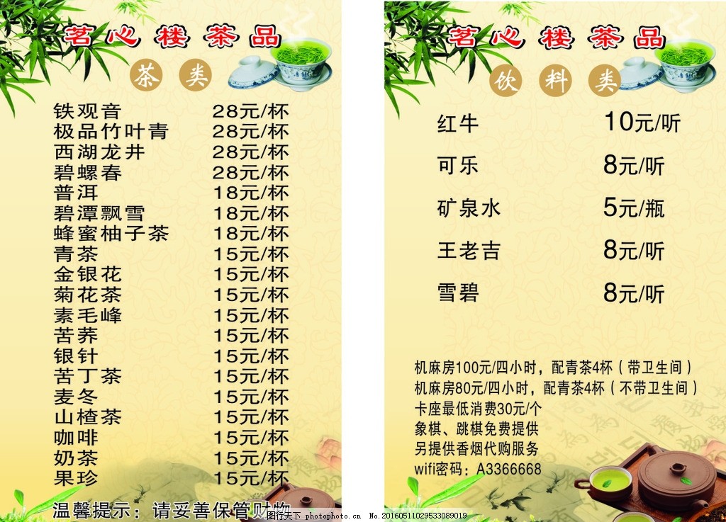 以下是我们为您准备的茶馆价格表: