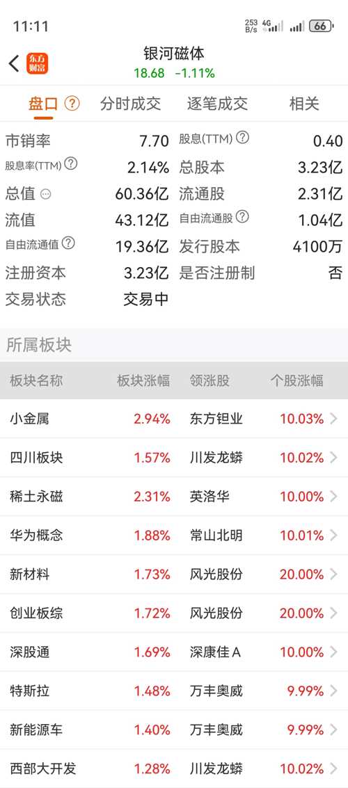 银河磁体股票行情分析