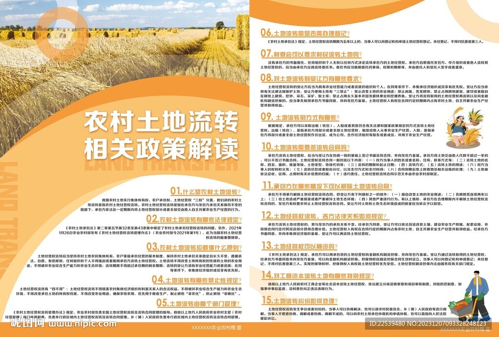 1、规范土地流转程序:为确保土地流转的公平、公正,新政策对土地流转的程序进行了明确规定,包括流转前的评估、流转信息的公开、流转合同的签订等,以促进土地规模化经营。